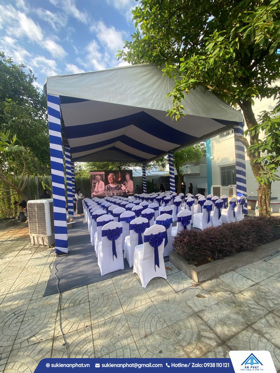 Khu vực Lễ: Sân khấu chắc chắn, âm thanh ánh sáng chất lượng cao (loa, micro, đèn par led...), màn hình LED (nếu cần).